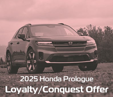 Eligible through 3/2/2026. $4,000 toward Cap Cost Reduction or Down Payment Assistance with the lease/finance of a new and not previously reported sold 2025 Prologue to qualified current owners of any 2010 or newer Honda or any of the competitive brands listed above. Must provide proof of ownership of eligible vehicle in the form of a current vehicle registration or proof of valid auto insurance. No trade-in required. Offer excludes purchases made prior to the program period and is transferable among members of the same household when the retail delivery registration address matches the current address of the proof of ownership document. Not redeemable for cash. Incentive paid to dealer and requires dealer participation. Not all customers will qualify. See dealer for details.