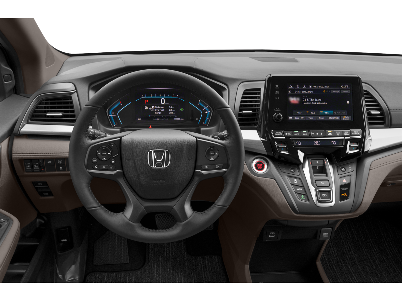 The spacious and versatile interior of the Odyssey offers seating for up to eight passengers, with ample cargo space for all your family's needs. Indulge in the comfort of heated front seats, the sophistication of leather upholstery, and the added convenience of a power liftgate and power-adjustable driver's seat.
